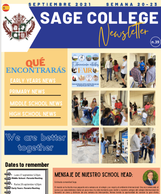Sage College School Newsletter 24-09-2021 SAGE NEWSLETTER Nº39 ES