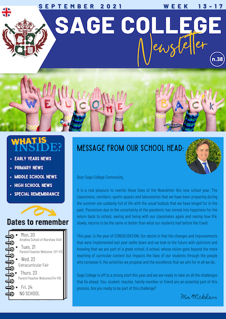 Sage College School Newsletter 08-10-2021 SAGE NEWSLETTER Nº41 ES