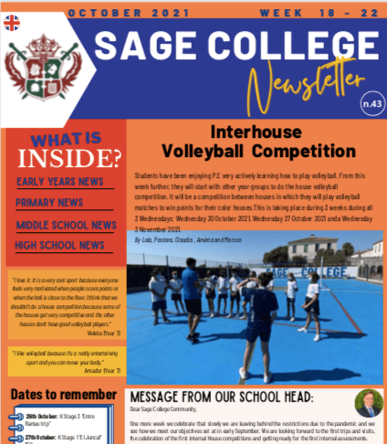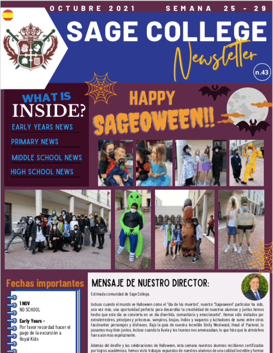 Sage College School Newsletter 22-10-2021 SAGE NEWSLETTER Nº43 ES