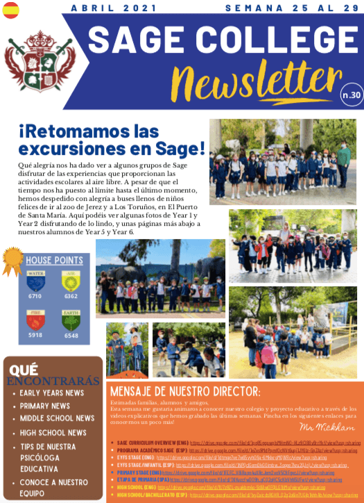 Sage College School Newsletter 30-04-2021 SAGE NEWSLETTER Nº30 ES