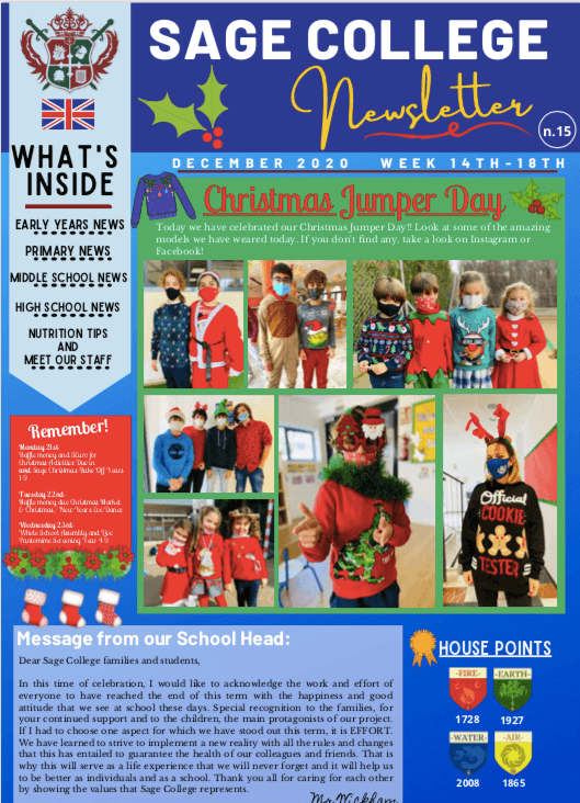 Sage College School Newsletter 18-12-2020 SAGE NEWSLETTER Nº15 ES