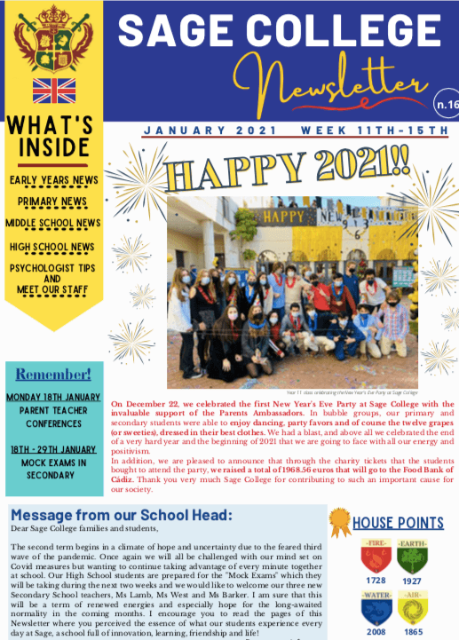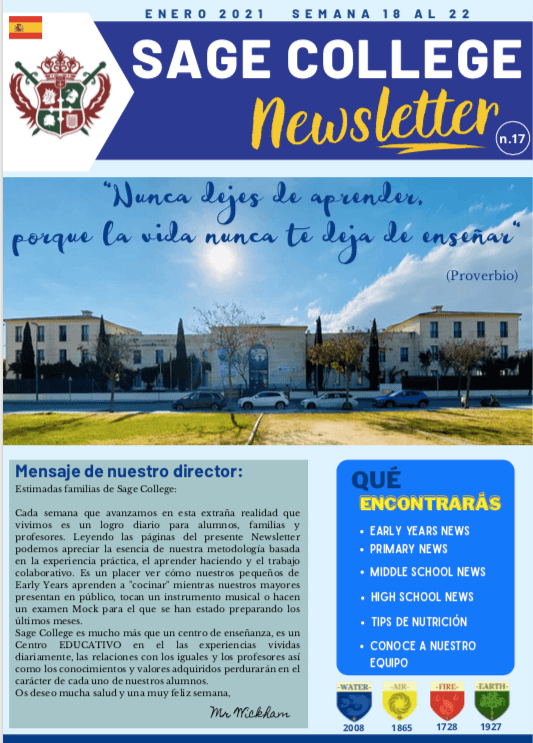 Sage College School Newsletter 22-01-2021 SAGE NEWSLETTER Nº17 ES