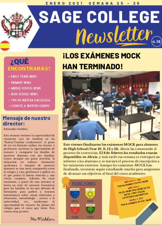 Sage College School Newsletter 29-01-2021 SAGE NEWSLETTER Nº18 ES