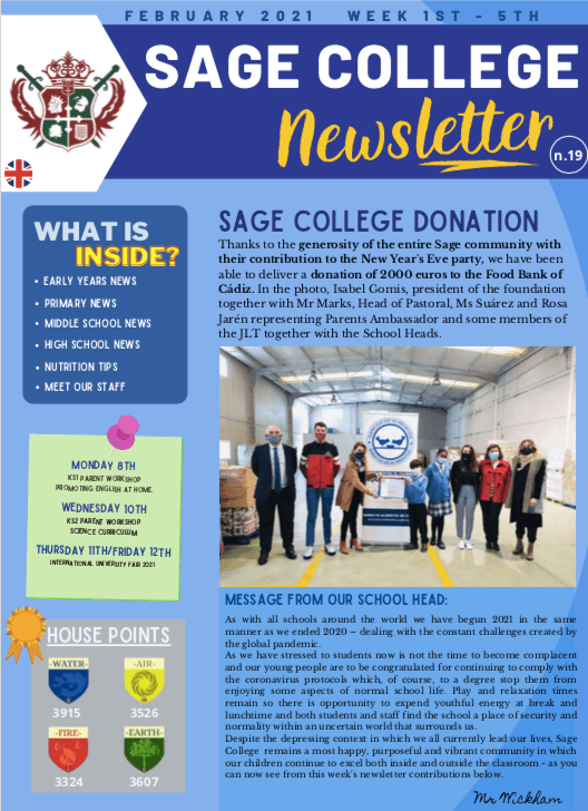 Sage College School Newsletter 05-02-2021 SAGE NEWSLETTER Nº19 ES