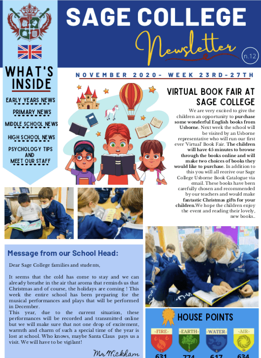 Sage College School Newsletter 20-11-2020 SAGE NEWSLETTER Nº11 ES