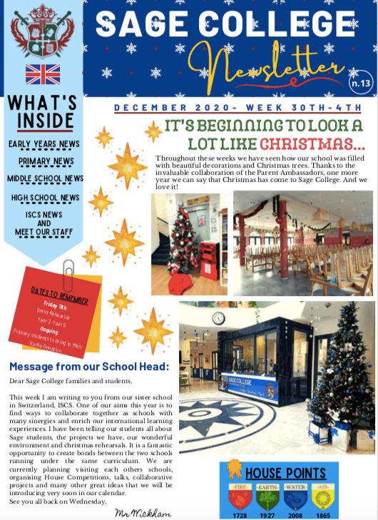 Sage College School Newsletter 04-12-2020 SAGE NEWSLETTER Nº13 ES